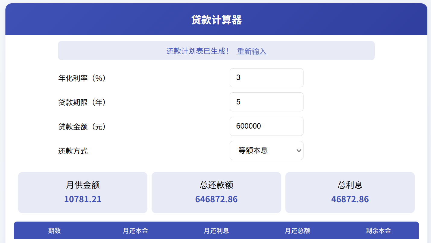 1、核心功能贷款计算代码未动;